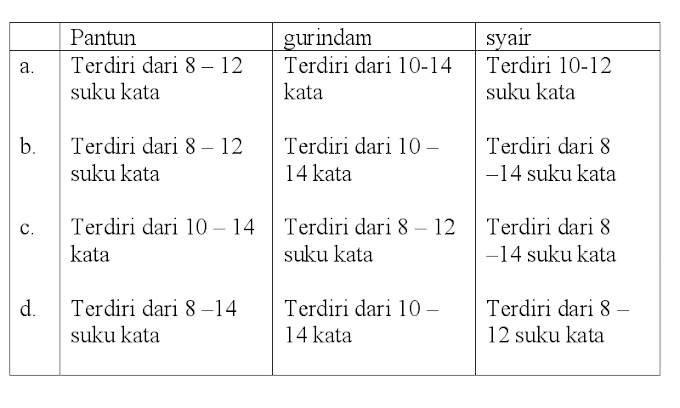 Kegiatan Belajar Awal Sem Lihat Cara Penyelesaian Di Qanda from thumb-m.mathpresso.io Gurindam adalah bagian dari kekayaan sastra. Berikut ini terdapat beberapa ciri ciri dari gurindam, yakni sebagai berikut: Tiap baris memiliki jumlah kata ada satu gurindam yang dahulu sangat terkenal karya raja ali haji, yakni gurindam 12 yang terdiri. Gurindam ini diawali dengan kata yang sama pada baris pertama setiap baitnya. Terdiri atas empat larik atau empat baris. Puisi lama atau tradisional, gurindam, ditulis dalam bentuk dua baris dan keduanya berhubungan. Gurindam berasal dari bahasa tamil (india) kirindam yang diartikan sebagai perumpamaan. Orang india membawa karya pendek ini.