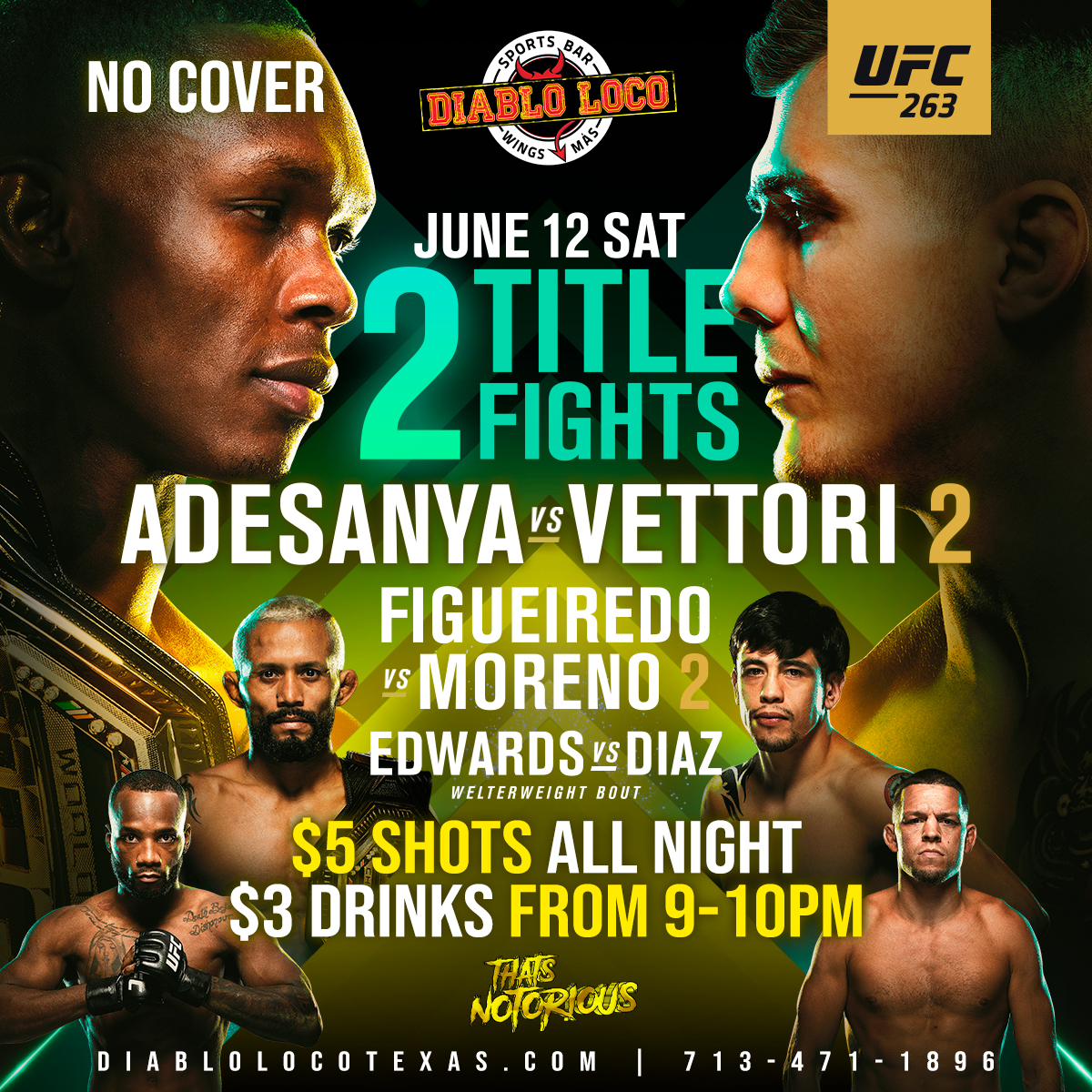 Ufc 263 is an upcoming ppv from ultimate fighting championship which will be headlined by the middleweight title fight between israel adesanya and marvin vettori. Buy ufc 263 tickets from vivid seats and be there live in phoenix at the gila river arena for all of the action in the octagon. Mcgregor 2 ufc fight ufc 263 live results and analysis: Don't miss a single strike of ufc 263, featuring the middleweight title fight between israel adesanya and marvin vettori and the flyweight title fight rematch between deiveson figueiredo and brandon. And thanks to amazing ufc tickets from bigstub, you can experience that excitement, live and in person.